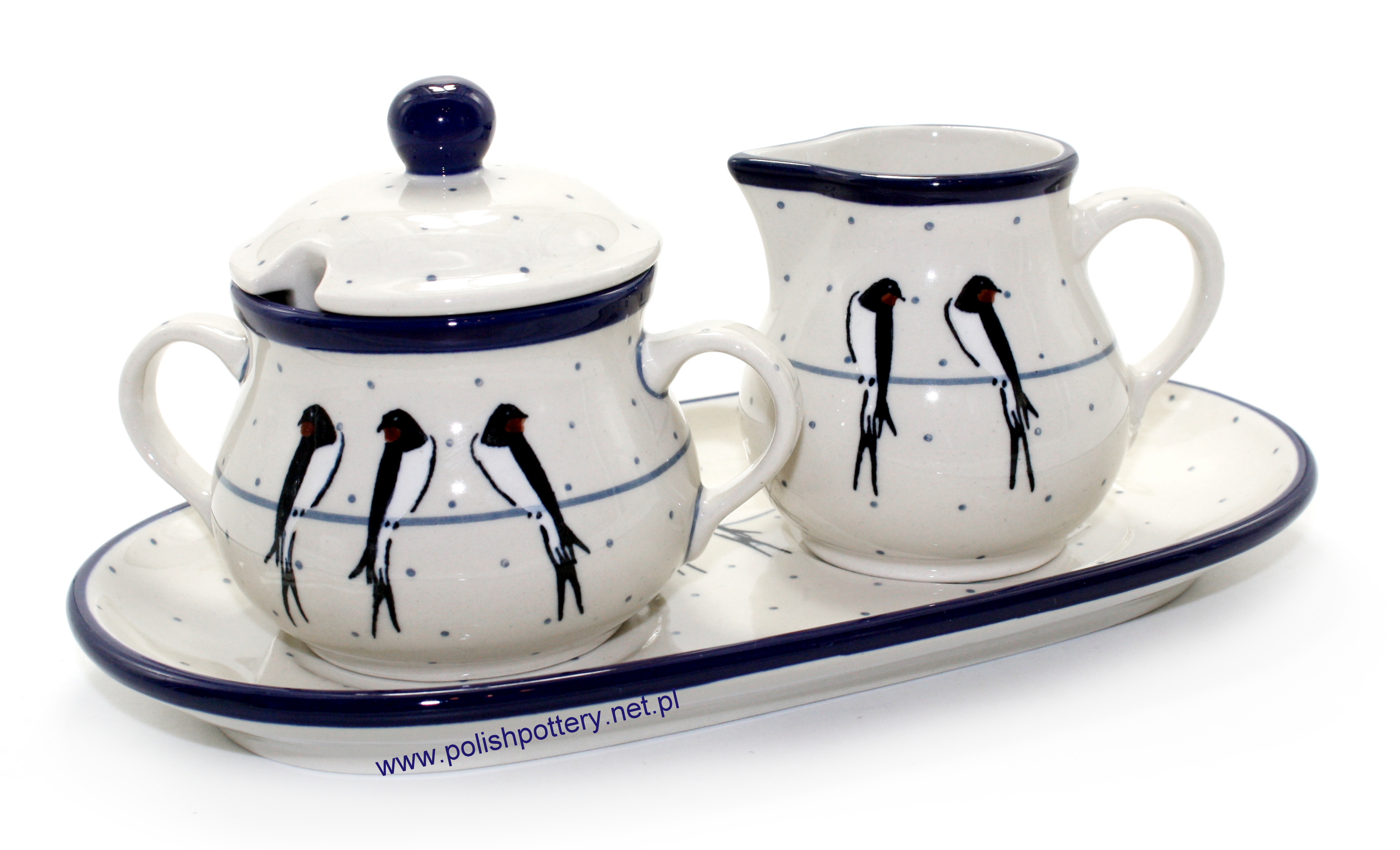 Cukiernica 0,2L+ mlecznik + tacka dek. U4831 Jaskółki